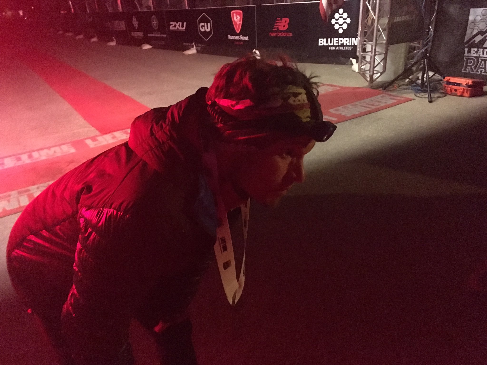 I left the aid station at 8pm. Three hours and fifty minutes later I walked over the finish line in Leadville. Still in 9th place and under 20 hrs. It was hard enough to walk that three miles from the finish I had to let Joe, my pacer, know that conversation would have to cease because I needed to concentrate on walking if we were going to make it in 20hrs. It was that bad. Credit: Robbie Lawless